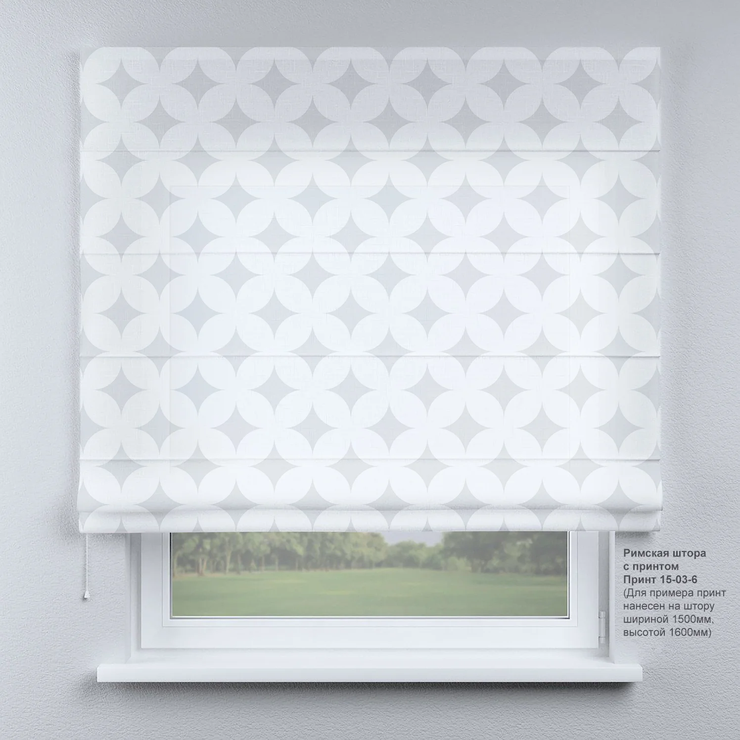 Римська фотоштора з Узором шиється з тканин Тюль Льон, Джусі Велюр, Блекаут Перфект на замовлення під індивідуальні розміри.