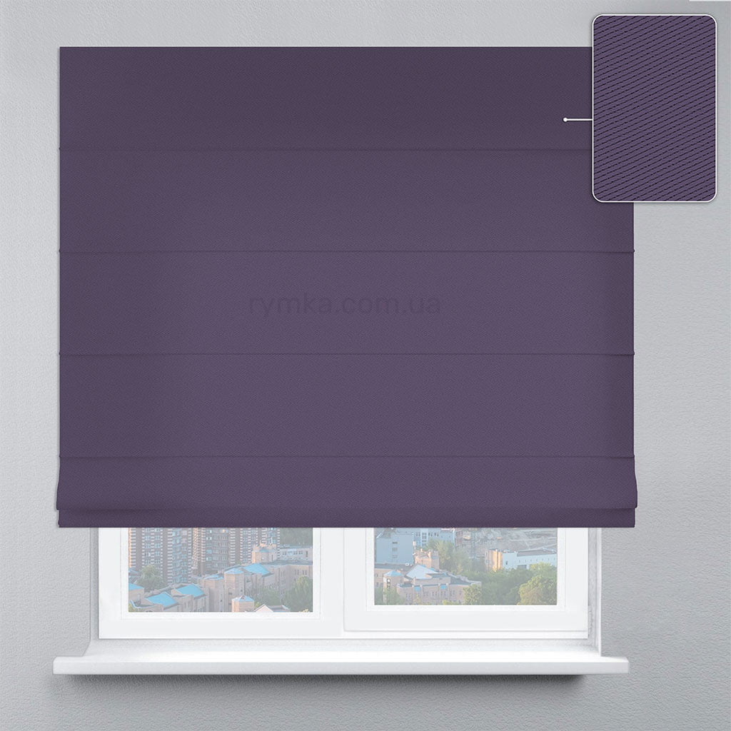Класична римська штора Блекаут Перфект бузкового кольору шиється з тканини Блекаут Перфект на замовлення під індивідуальні розміри.